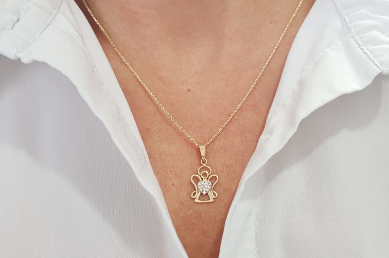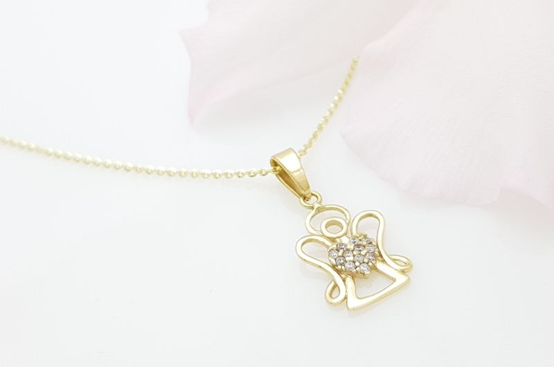 Ta čudovit angel je primeren za deklico, dekle, ženo, mamico in babico. Je nežno darilo za krst, obhajilo, birmo ali rojstni dan. Podarite zlat nakit za lepe spomine.