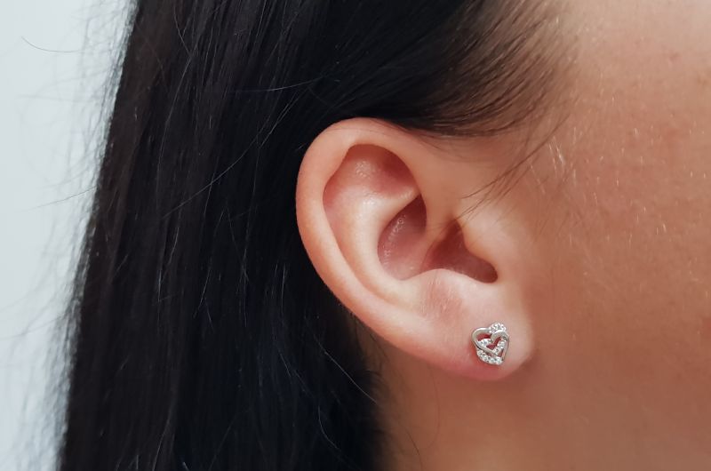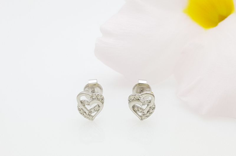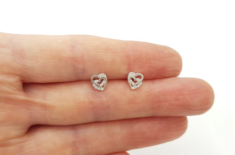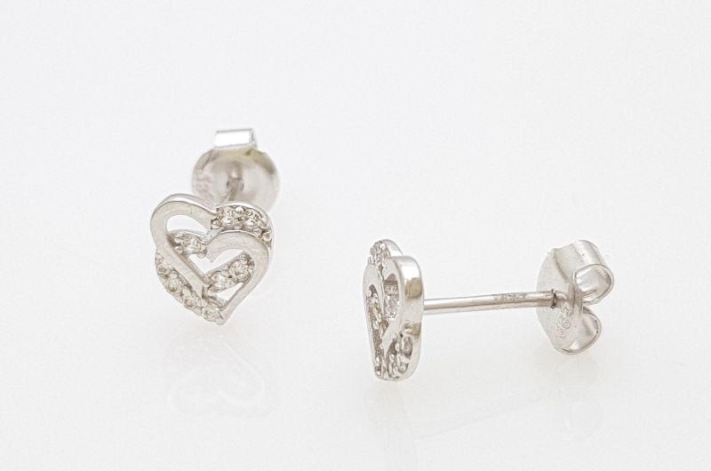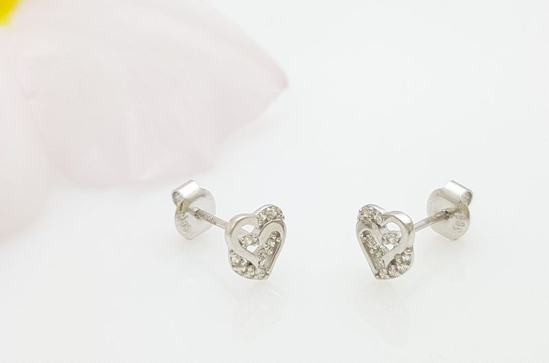 Otroški ali ženski uhani iz belega zlata | prepleteno srce s cirkoni 5767