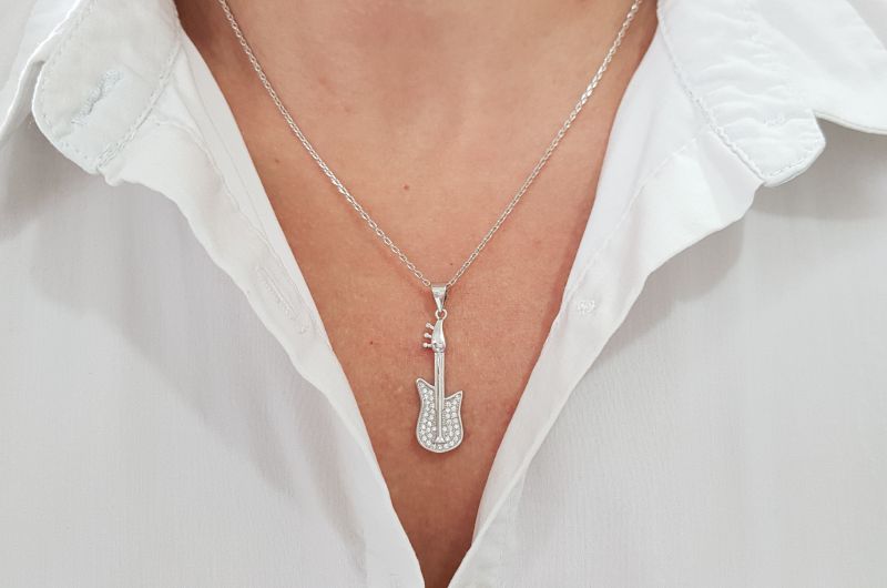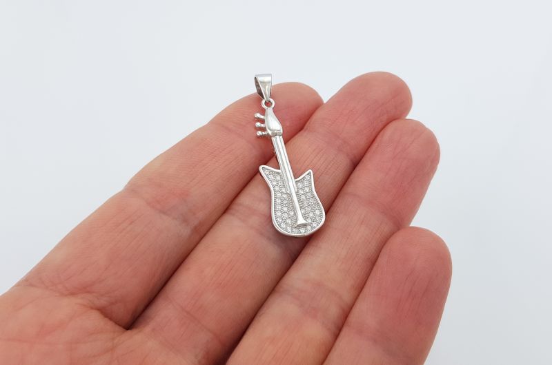Obesek je izdelan v obliki kitare, ki ima po trupu vkovane bleščeče cirkone. Vrat je gladek.