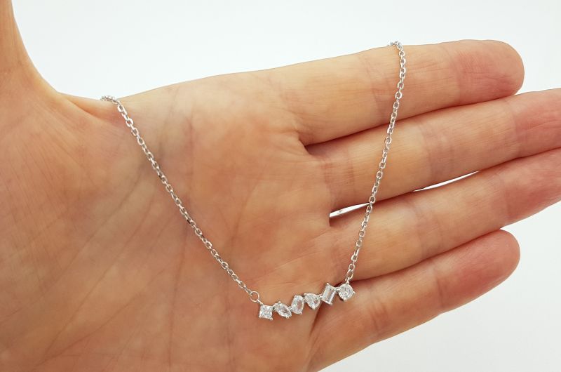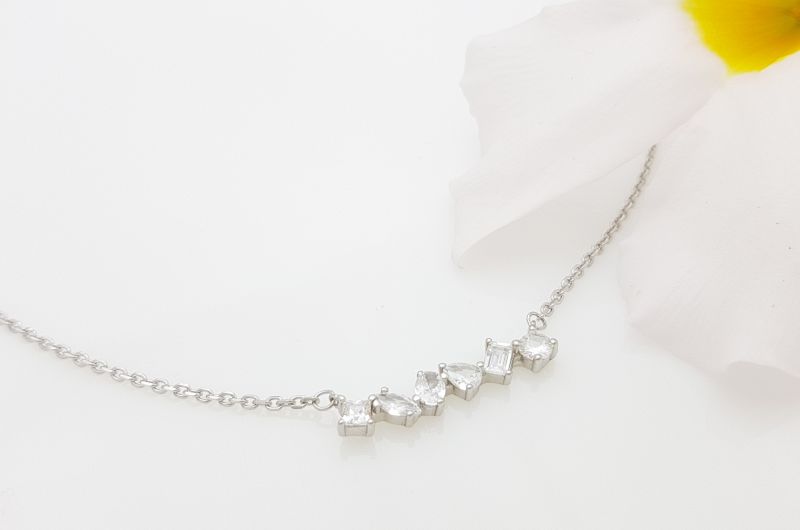 Verižica je izdelana iz majhnih okroglih členov. Na srednjem delu, je diadem, sestavljen iz šestih cirkonov različnih oblik (kvadrat, markiza, oval, solza, pravokotnik in krog). Dolžina diadema je 25 mm. Verižica je prevlečena z belim zlatom, da ne potemni in je dalj časa obstojna. Na koncu so členi, za prilagajanje dolžine. Zapira se s karabinom.