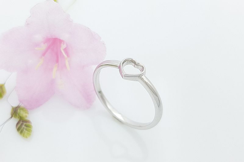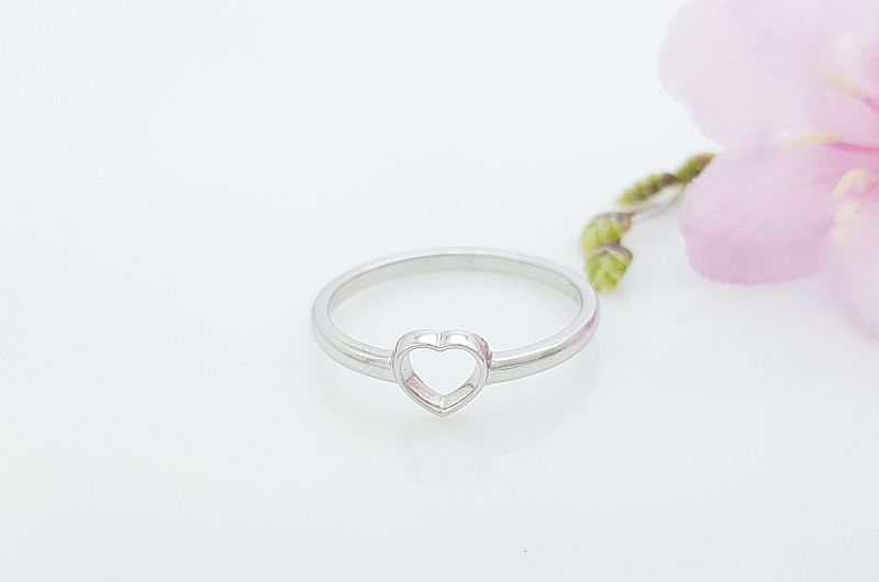 Zaročni prstan iz belega zlata brez kamnov | srce ZP38