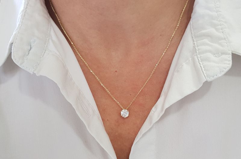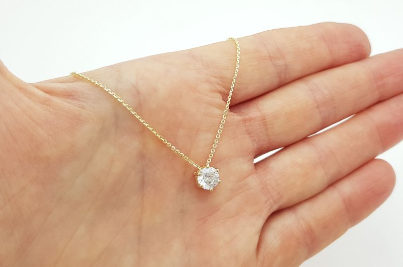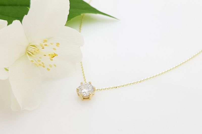 Izdelamo jo tudi v belem in rdečem zlatu ter s kamnom po vaših željah. Dolžino verižice nam sporočite ob naročilu. Obesek je dobavljiv tudi v premeru 4 mm.