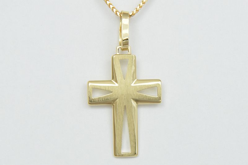 Obesek je širok, izdelan v obliki križa. Na sprednji strani je matiran in ima gladek rob, na zadnji strani pa je gladek, svetleč. Na vsakem kraku je prazen prostor v obliki trikotnika.