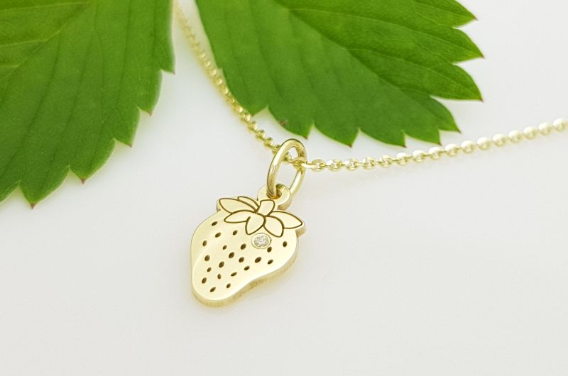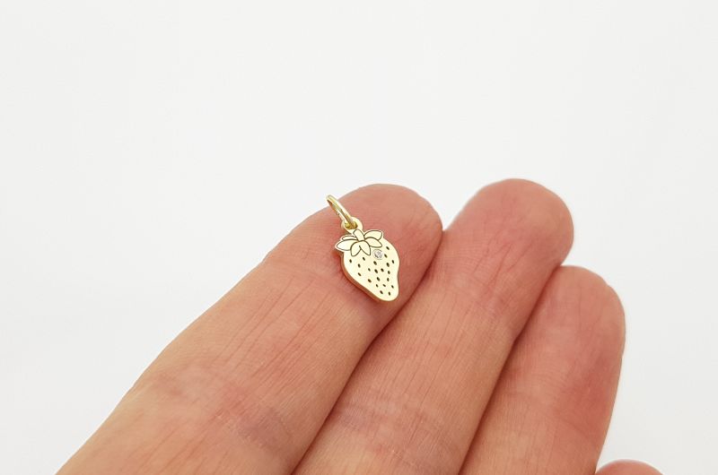 Obesek je izdelan v obliki jagode. Sprednja stran je gravirana v stilu jagode, dodan je mini cirkon.