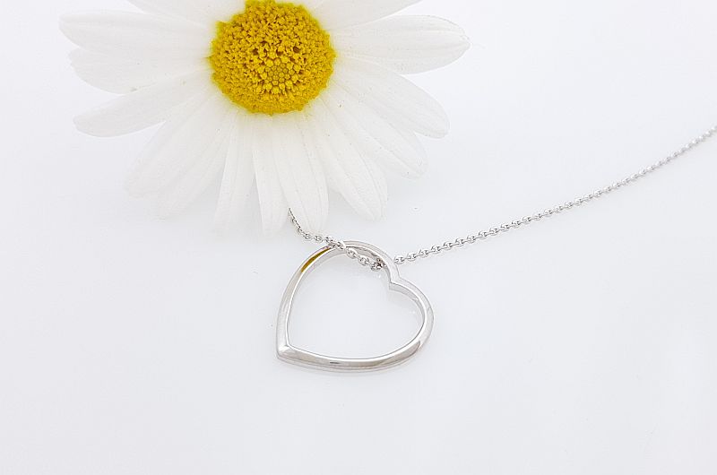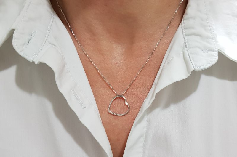 Obesek je izdelan v obliki srca, samo iz gladkega oboda, ki prosto visi na verižici.