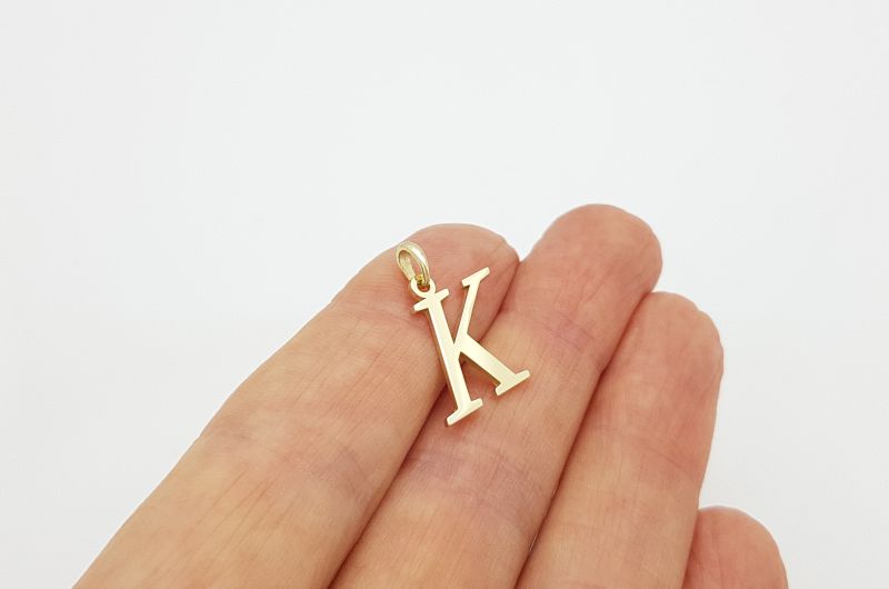 Obesek je izdelan v obliki črke- inicialke, v velikosti, približno 18×18 mm. Odvisno od črke.
