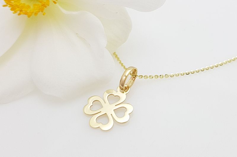 Obesek je izdelan v obliki štiriperesne deteljice. Oblikovana je kot obod- zlat, gladek rob, v sredini pa je prazen prostor.