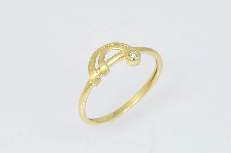 Prstan je izdelan iz pol okrogle žice, na vrhu ima dva matirana polkroga, ob robu pa je vkovan cirkon.